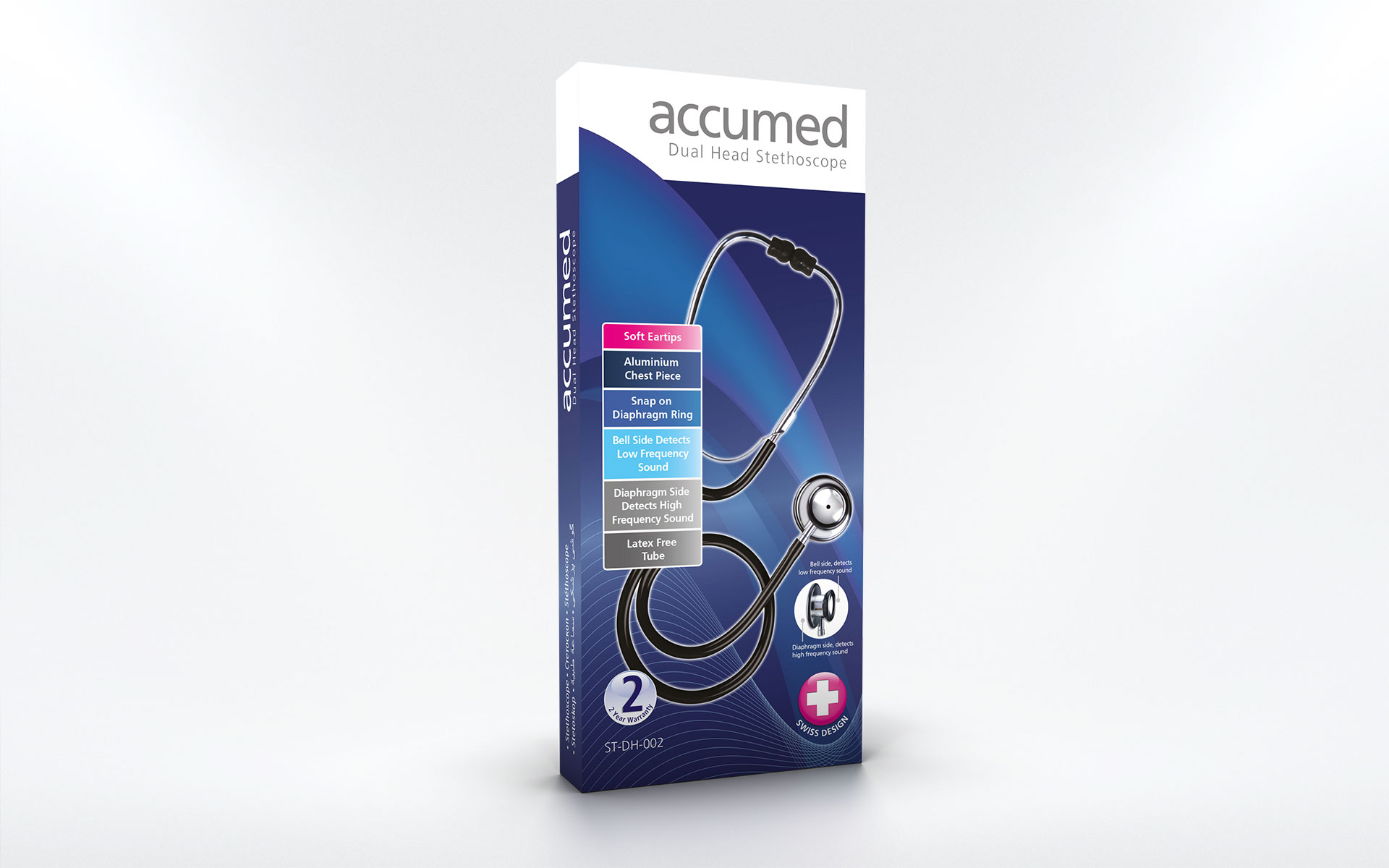 O estetoscópio de cabeça dupla é indicado para uso na deteção e amplificação de sons associados a vários órgãos do corpo humano. Foi concebido para permitir que o utilizador consiga ouvir diferentes frequências sonoras. O lado do sino é projetado para ouvir sons pulmonares de baixa frequência, enquanto o lado oposto, diafragma, foi concebido para ouvir sons cardíacos de alta frequência. Isso torna o estetoscópio de cabeça dupla uma opção muito melhor do que um estetoscópio de cabeça única para os médicos dos Cuidados de Saúde Primários/Medicina Geral e familiar.